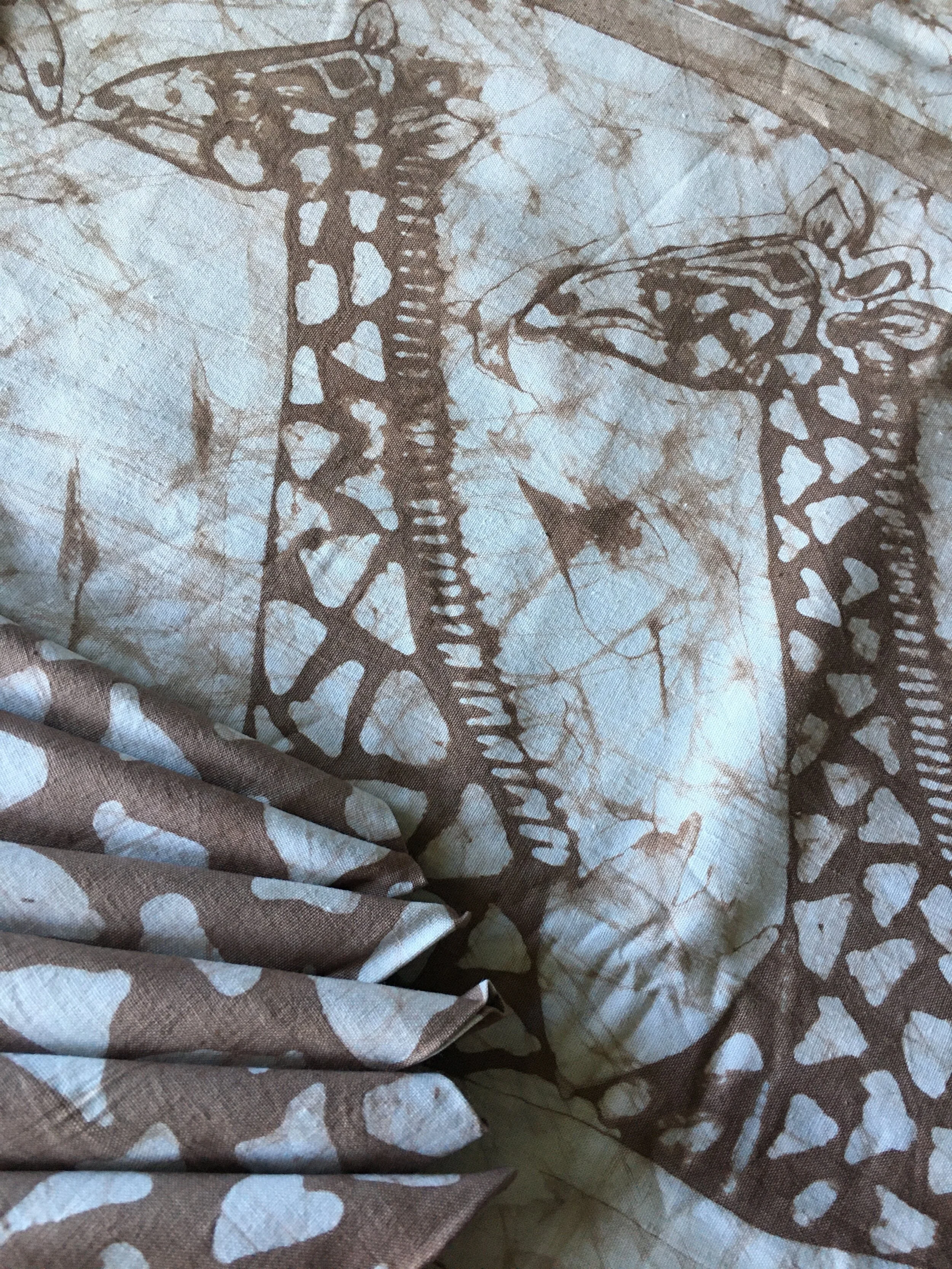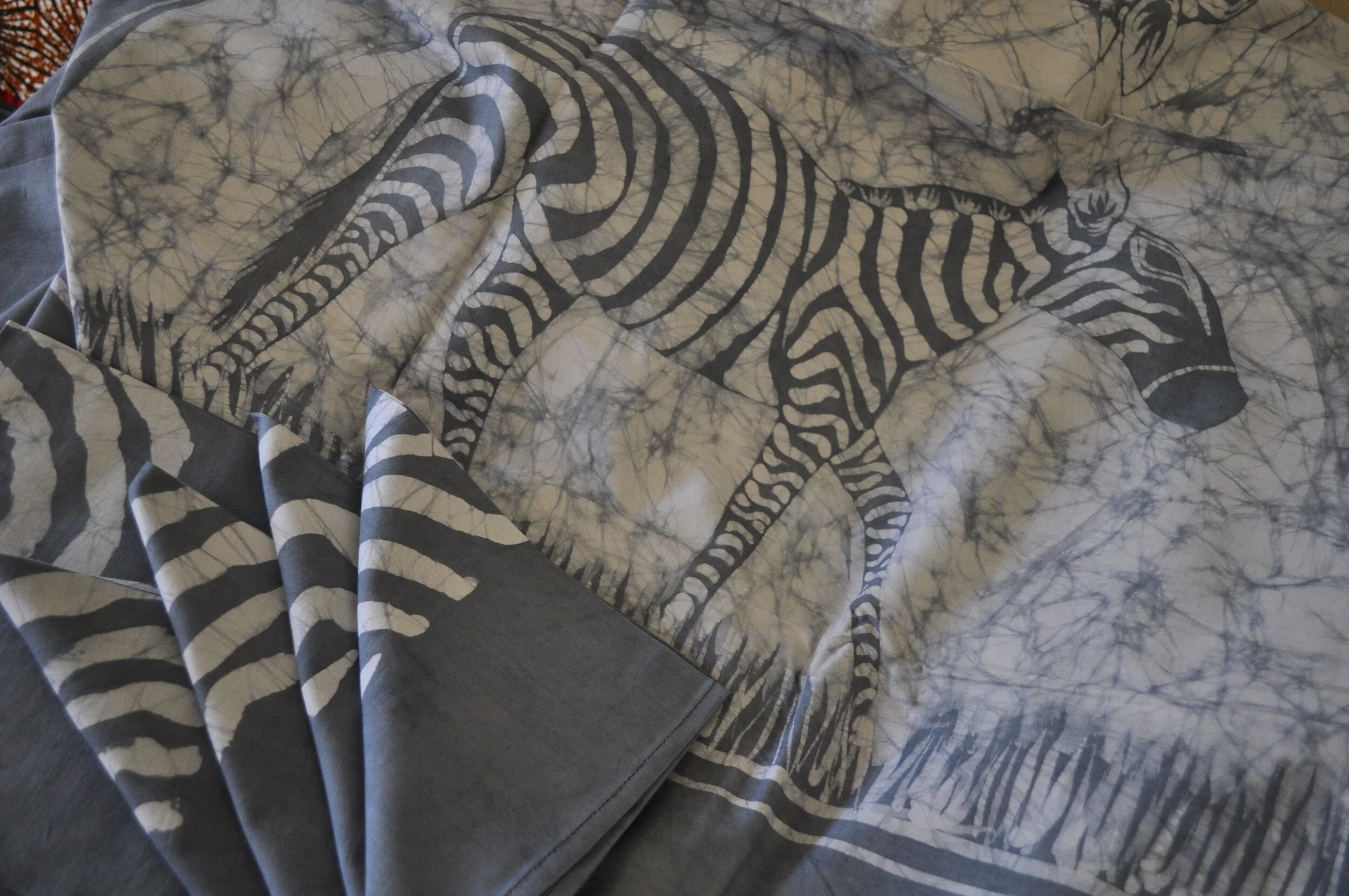 These beautiful and fun table cloths are made in Mama Marilyn’s shop in Arusha. It was a misty drive up into the mountains to find her. Each unique set comes with 6 napkins. They make great gifts if you can part with them. 74 x 55 inches.